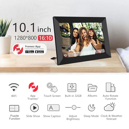 I recently purchased the Akimart 10.1 Inch Smart WiFi Digital Photo Frame, and Im very pleased with it. The photo frame is sleek and modern looking, and its easy to set up and use. With the built in Wi Fi connectivity, I can easily share photos or videos with friends and family from anywhere in the world. The IPS HD Touch Screen provides a clear picture, even at a glance. Plus, it has some great features like automatic photo rotation and adjustable brightness.